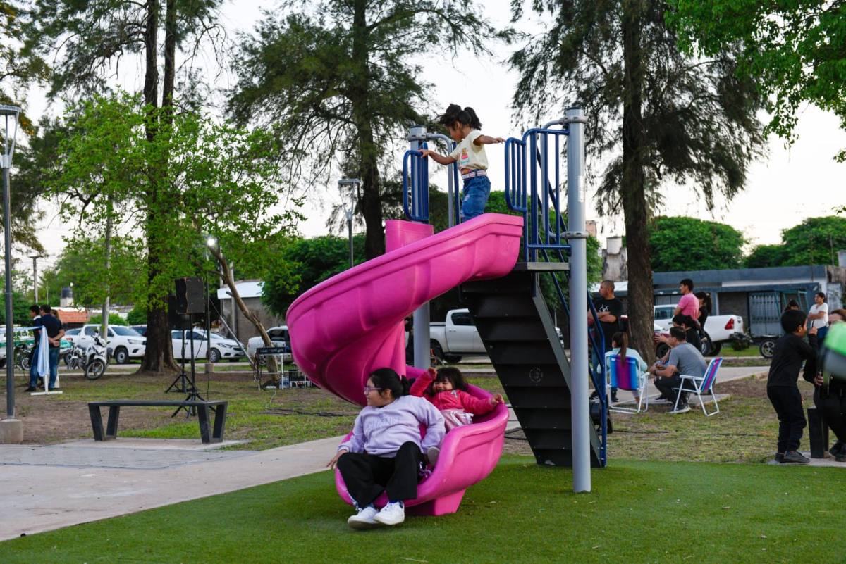 La renovada plaza cuenta con luminarias leds, mobiliario urbano, parquizado, sendas peatonales, juegos infantiles, estación saludable y cancha de básquet.