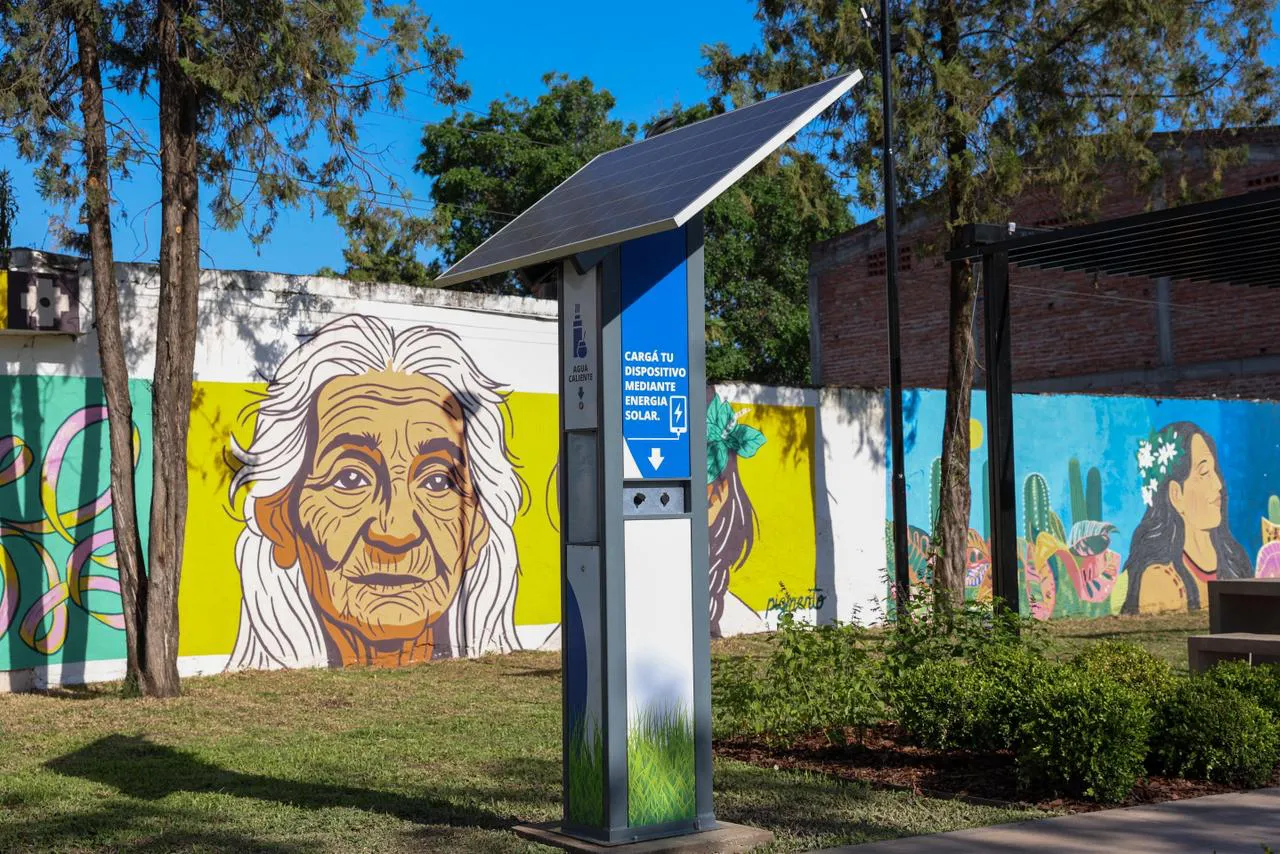 “Tiene un anfiteatro, hicimos caminerías, juegos infantiles nuevos, tenemos para cargar el celular con energía fotovoltaica y para cargar agua, tenemos murales, una bandera para la parte cívica, una escultura que habla de la libertad y un paisajismo fantástico”, especificó.