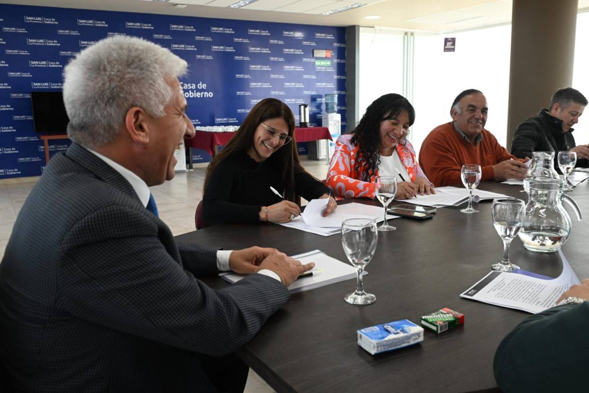 Este miércoles, pasado el mediodía, rubricaron el acuerdo los intendentes de El Trapiche, Juan Llerena, La Carolina, Leandro N. Alem, Los Manantiales, San Francisco del Monte de Oro, San Gerónimo, Unión y Villa de la Quebrada, lo que garantiza la continuidad de obras y mejoras que darán mayor calidad de vida a los vecinos.