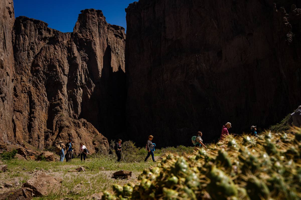 Asimismo, el cañadón es el paraíso para los amantes de la escalada y el trekking, cuenta con más de 200 rutas para escaladores de todos los niveles y una senda de dificultad baja que recorre la caldera por formaciones cautivantes, lo que también vuelve a este sector un punto fotográfico destacado de la Patagonia.