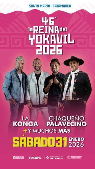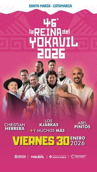 La Municipalidad de Santa María confirmó la grilla artística de la 46ª edición de la Fiesta Nacional Reina del Yokavil, que se realizará del 30 de enero al 1 de febrero de 2026, consolidándose como uno de los eventos más convocantes del verano en el Valle Calchaquí.