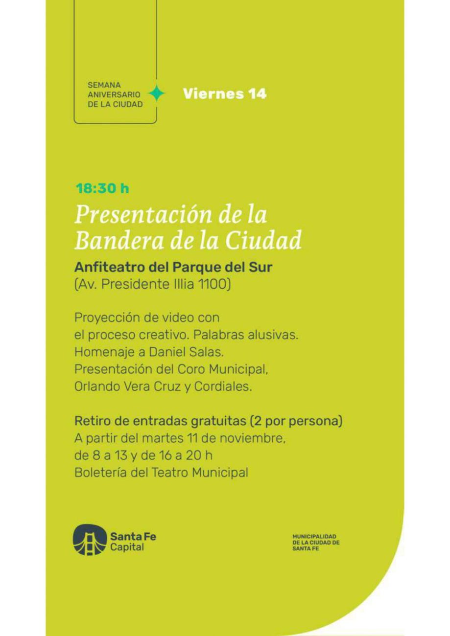 El acto oficial será el viernes 14 y reunirá a toda la comunidad en un espacio emblemático de la capital, como lo es el Anfiteatro del Parque del Sur, ubicado en Avenida Presidente Illia 1100. Durante la ceremonia se presentará el Coro Municipal, se realizará el izamiento oficial de la bandera y se entregarán reconocimientos a los jurados y finalistas que formaron parte del proceso de selección del diseño del nuevo símbolo local.