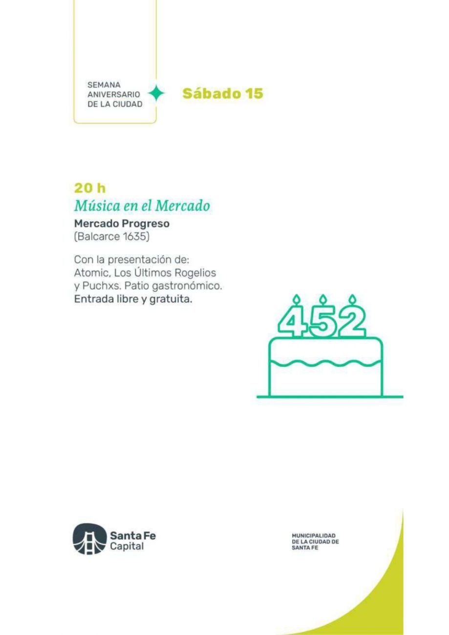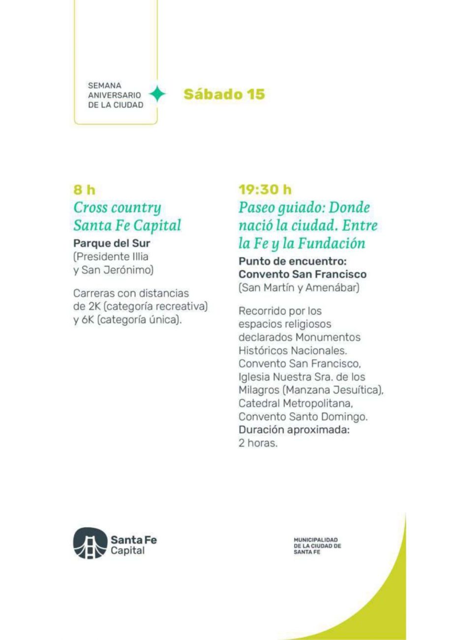 El sábado 15 de noviembre se celebrará un nuevo aniversario de la fundación de la ciudad de Santa Fe por sus 452 años. En ese marco, se organizaron diferentes actividades históricas, musicales, deportivas y de apoyo a la comunidad.