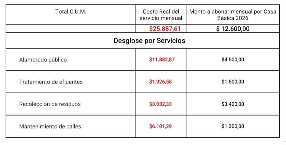 *Recordamos que el CUM se compone de los siguientes ítems: Alumbrado público, Tratamiento de efluentes, Recolección de residuos, Mantenimiento de calles, Mantenimiento de espacios verdes y la Contribución a Bomberos Voluntarios.