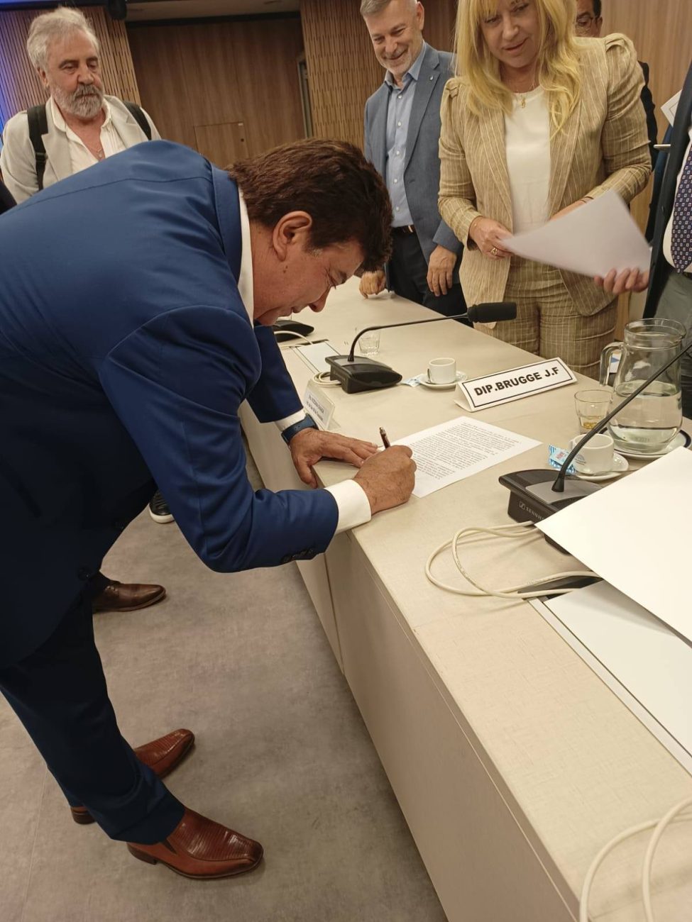 El presidente de la Federación Argentina de Municipios, Fernando Espinoza rubrica el documento.