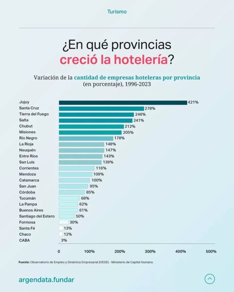 Misiones se posiciona como un referente nacional y regional en turismo por su crecimiento y dinamismo. Su inserción en el circuito internacional a través de Puerto Iguazú y el desarrollo sostenido de la infraestructura hotelera la ubican en un lugar estratégico dentro del mapa turístico argentino, de acuerdo con datos de la Fundación Argendata.