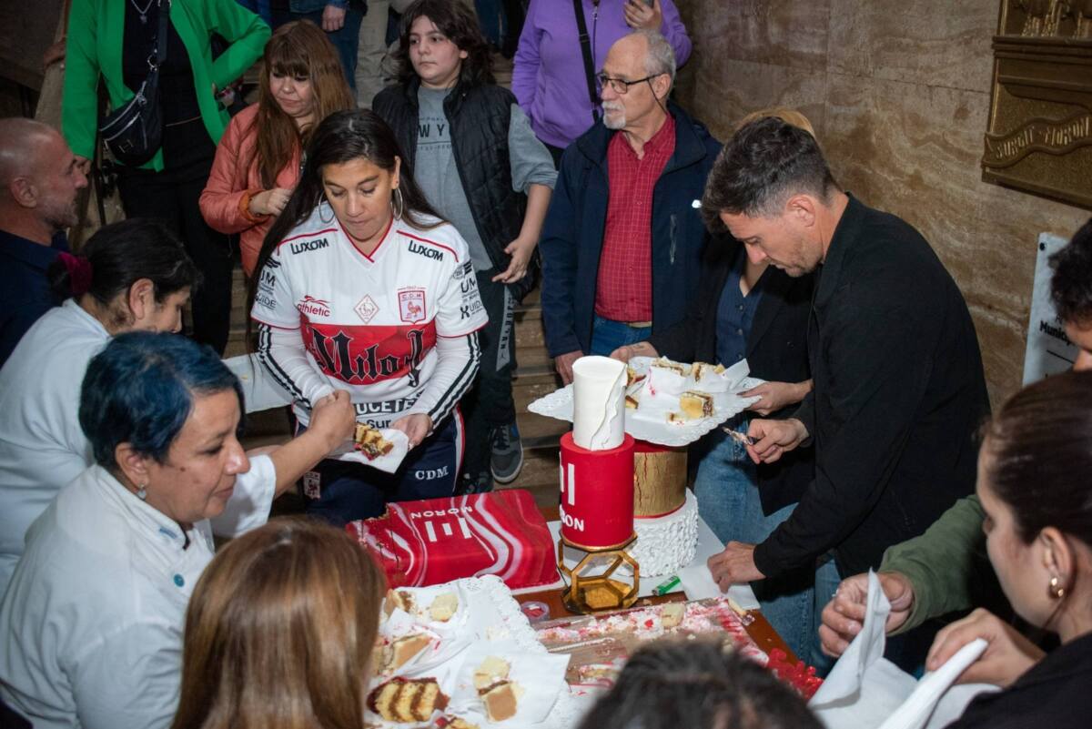 Como cada año, el intendente Lucas Ghi encabezó el corte de la torta aniversario, elaborada especialmente por estudiantes del Centro Municipal de Gastronomía, el Instituto IMES y otros centros de formación del distrito.