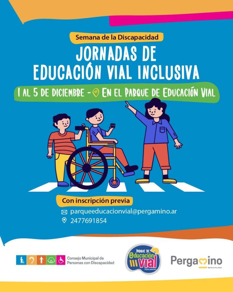 En el marco de la Semana de la Discapacidad, el Parque de Educación Vial de Pergamino junto al Consejo Municipal de Personas con Discapacidad, llevarán a cabo jornadas de Educación Vial Inclusiva. Estas experiencias diseñadas para proporcionar herramientas de autonomía y seguridad a niños y adolescentes con discapacidad se realizarán del 1 al 5 de diciembre con inscripción previa.
