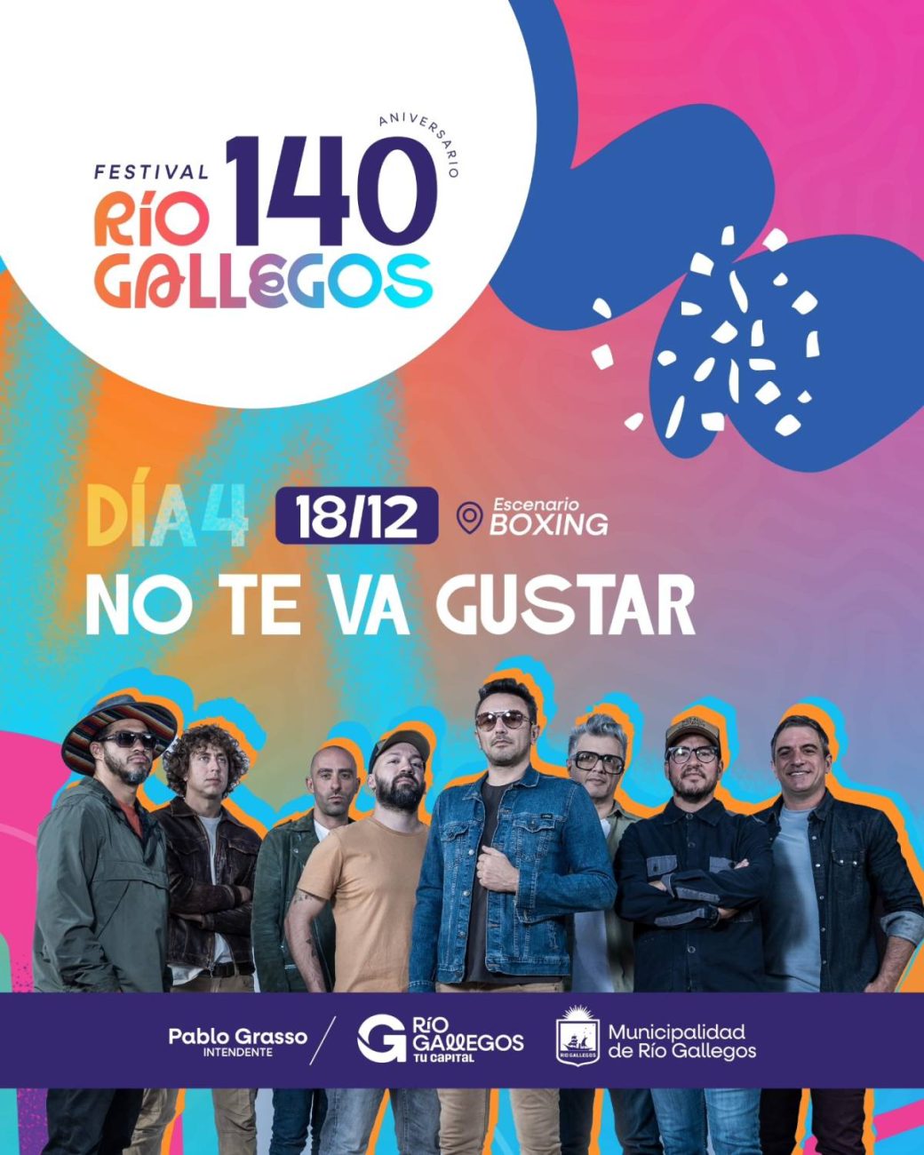 Del 15 al 18 de diciembre de 2025, Río Gallegos vivirá cuatro jornadas de fiesta en el Boxing Club, con una grilla de artistas nacionales e internacionales que incluye a No Te Va Gustar, Diego Torres, Lázaro Caballero, El Mago y La Nueva, y C.R.O, entre otros.
