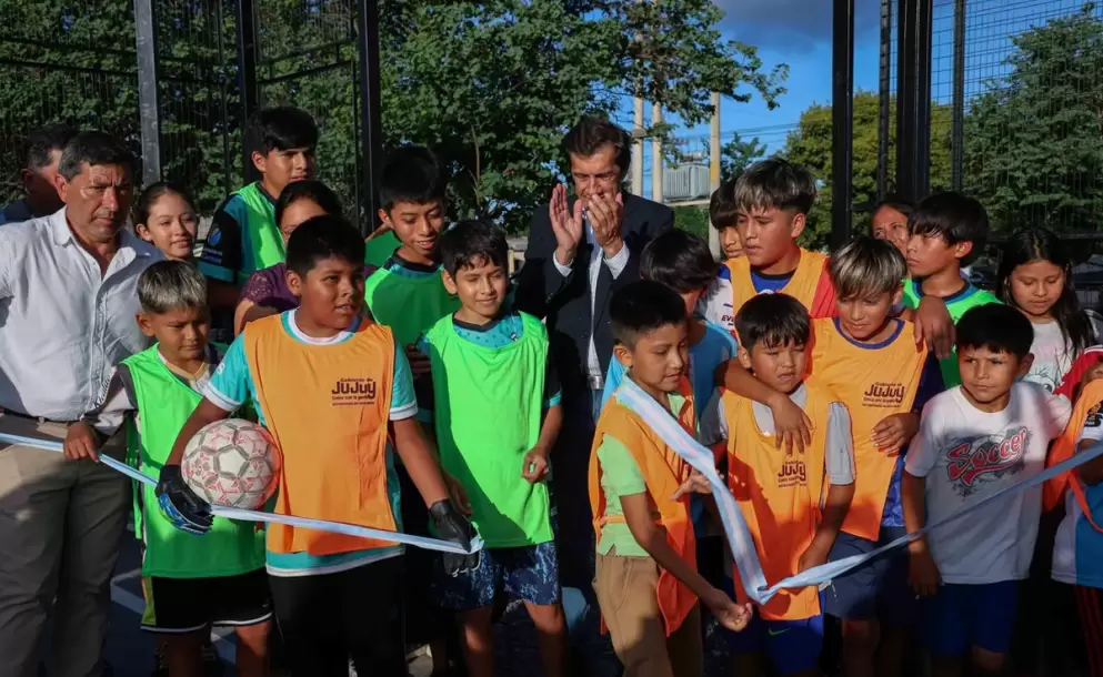 El gobernador Carlos Sadir inauguró las obras de mejora, renovación y reacondicionamiento del polideportivo del barrio 1° de Mayo en El Carmen. Con niños, vecinos y autoridades locales, el mandatario participó del significativo acto para ese sector de la ciudad.