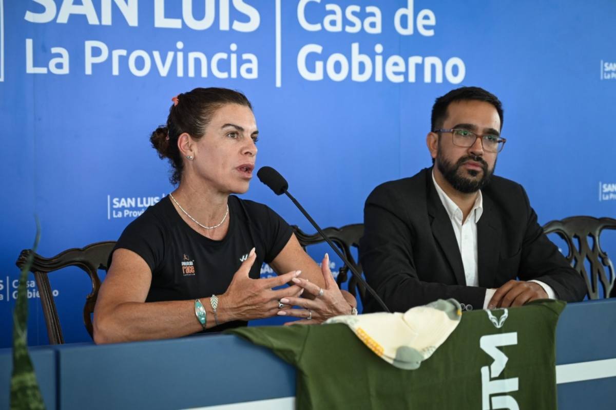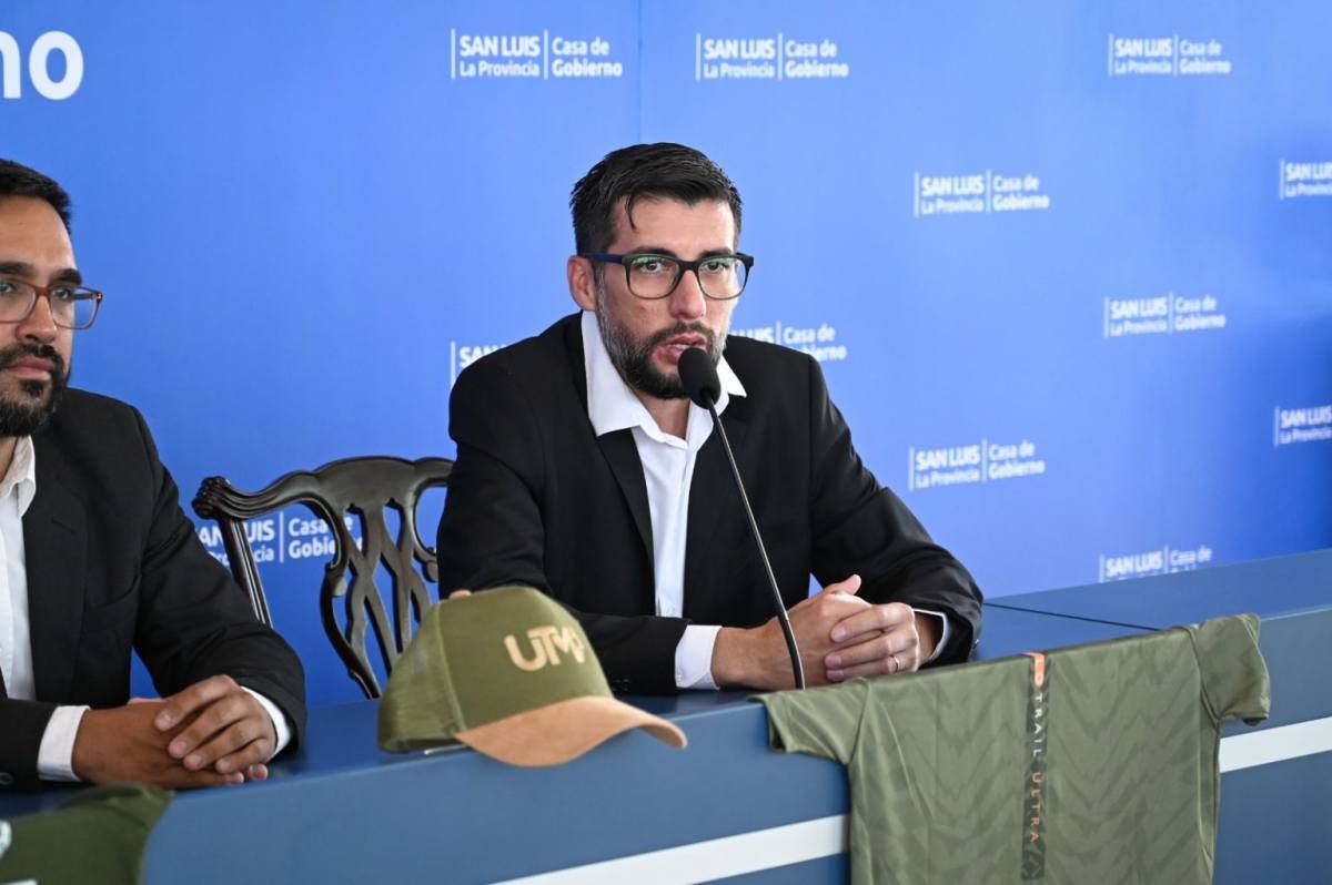 El ministro de Turismo y Cultura, Juan Álvarez Pinto, junto con el intendente de la Villa de Merlo, Leonardo Rodríguez y Tania Díaz, una experimentada corredora y empresaria, presentaron la carrera de montaña ‘Ultra Trail Merlo’, que comenzará el viernes 5 de diciembre con las acreditaciones de 12:00 a 20:00 en el hotel ‘Parque y Sol’ ubicado en Avenida del Sol 715, y finalizará el domingo 7 de diciembre a las 20:00 en la Casa Museo Palmira Scrosoppi, ubicada en Avenida del Sol 872, en la Villa de Merlo.