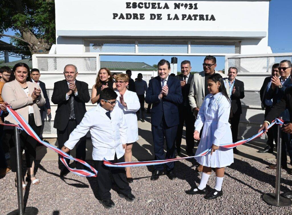La comitiva se trasladó luego a la Escuela N° 931 “Padre de la Patria” para dejar formalmente habilitadas las obras de refacción y ampliación de la institución a donde asisten 24 alumnos y que cuenta con conexión de internet, oficinas para dirección y secretaría; biblioteca; aulas; aula taller; patio cubierto; cocina comedor; sanitarios para alumnos y para docentes. Además de la renovación de pisos, cubiertas y carpinterías, así como la construcción de dos aulas, comedor, cocina con fogón, nuevos espacios para optimizar el funcionamiento institucional.